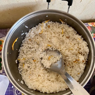 We wildenn wat werken aan het project, al werden we af en toe afgeleid. Zo kwam Alphonsina (de vrouw die werkt voor de priesters) met suikerriet en mochten we hiervan proeven.